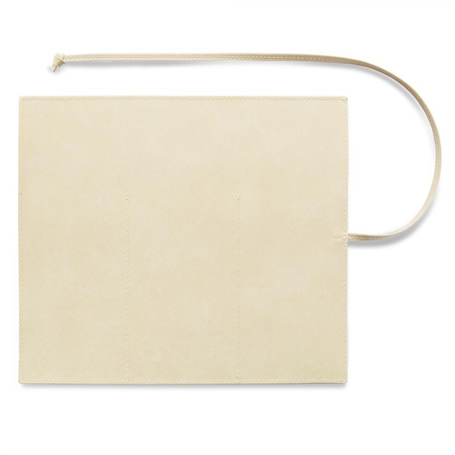 | 商品規格 | [サイズ] 本体:W24xH21cm(広げた状態) ポケット:W8xH14cm [色] オフホワイト [素材] 合皮(PVC・ポリエステル) |