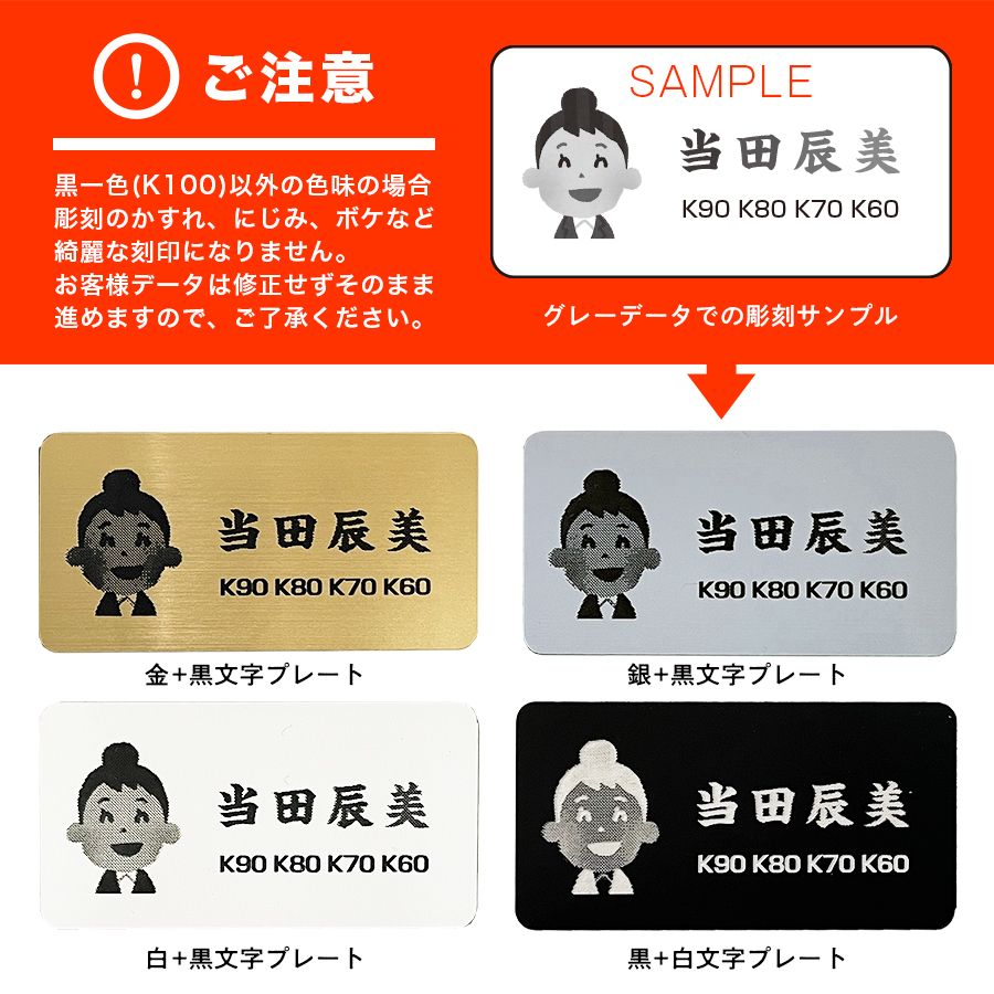 | アイテム情報 | こちらは二層板ネームプレート(70×20mm)の完全データ入稿用商品です。 必ず、以下の入稿用テンプレートを使用してご入稿ください。 入稿用テンプレート