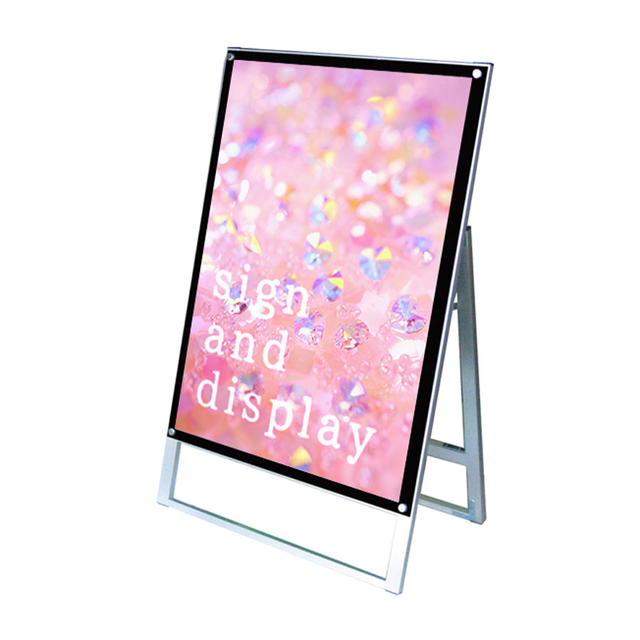 | アイテム情報 | ポスター交換がとっても簡単なパネルスタンドです。 上部2箇所のマグネジ(ネオジウム磁石)を取り外し、パネルを少し手前に開き、ポスターを上から差し替えるだけの簡単交換が可能です。 下部にはアンダーバーがついているので、ポスターを入れるだけで位置決めも不要。昼はランチ用、夜はディナー用、とスピーディーに交換ができます。 マグネジは、強力ネオジウム磁石とネジを組み合わせたオリジナルの化粧ビスで、従来品の4分の1の時間で取り外しが可能です。磁力だけではないので強風などでもアクリルが外れる心配もありません。 |