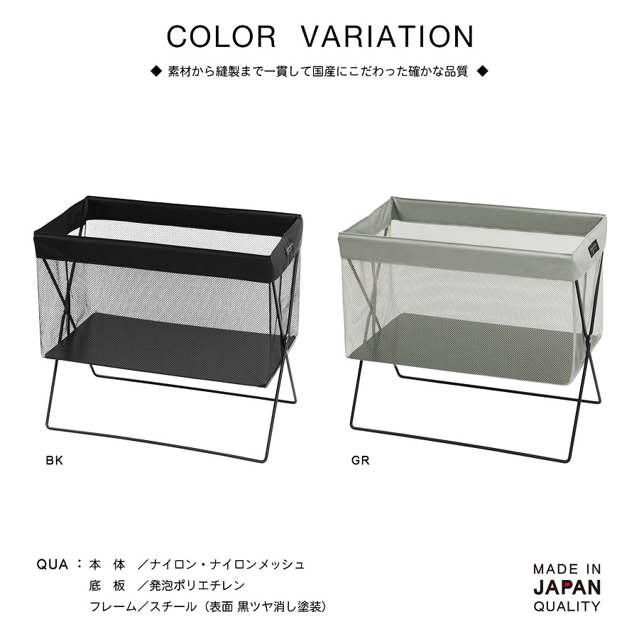 | 商品規格 | [サイズ] W43xH38(本体25)xD25cm [色] グレー [素材] ナイロン・スチール(表面 黒ツヤ消し塗装) ※日本製 |