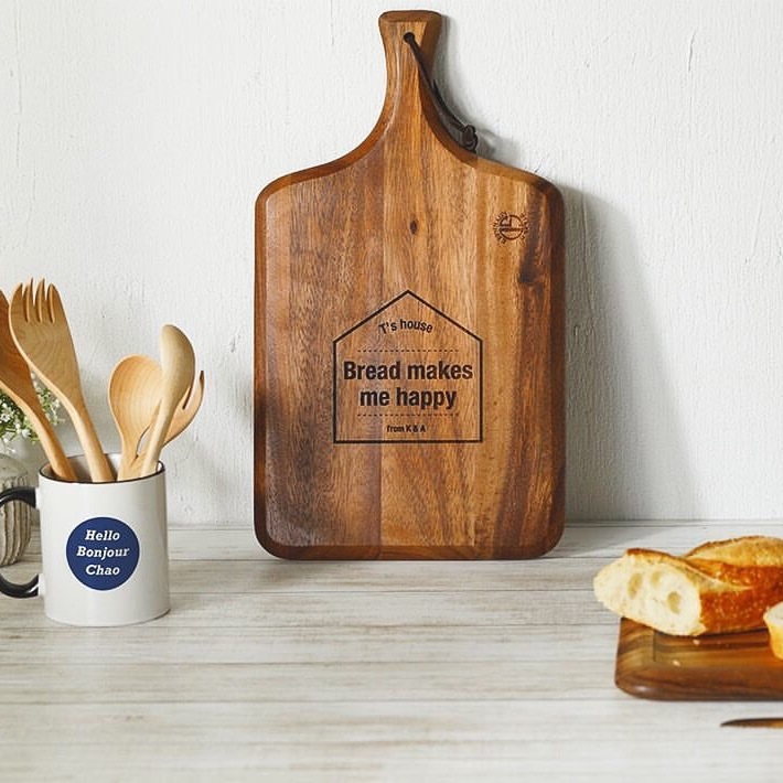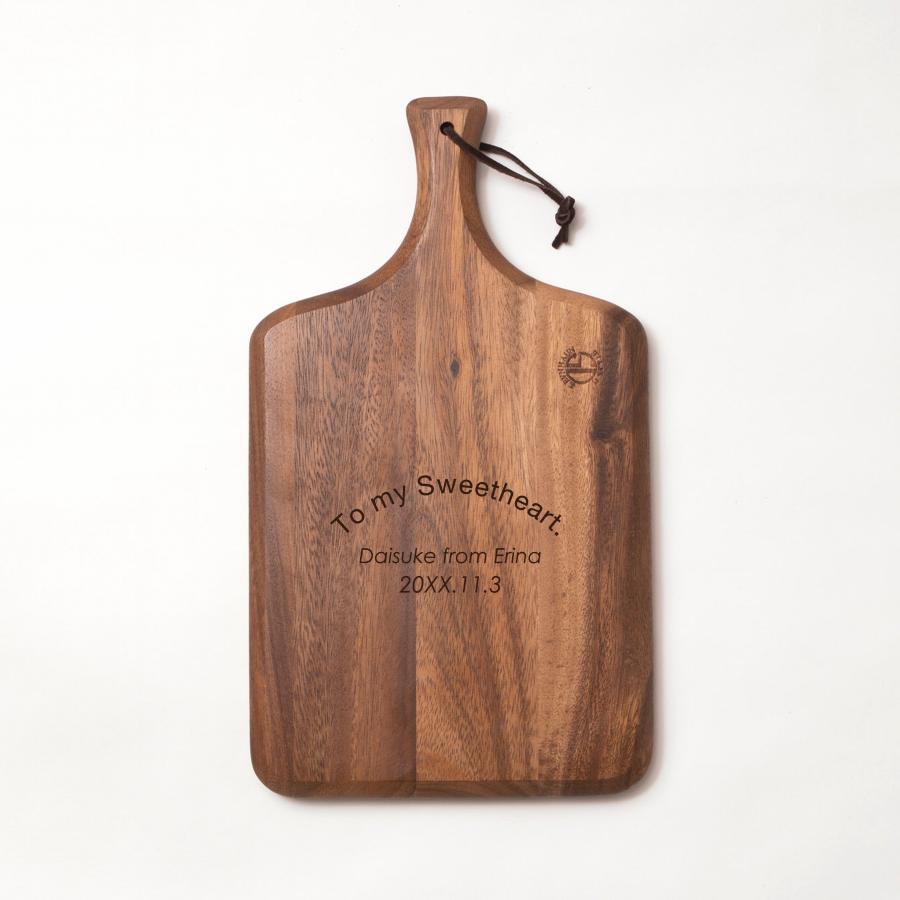 | アイテム情報 | こちらはWEB上で編集ができる商品です。 レーザー彫刻でオリジナルプリントができるカッティングボードです。 北欧デザインのルーツ、デンマークデザインをモチーフとした、KEVNHAUN D STYLE。 片面をカッティングボードに、もう片面をトレイとして、1枚に2つの機能を持った多機能ボードです。 天然アカシアの木目に温もりと高級感があり、さらに料理を美味しく見せてくれます。 色や木目が商品ごとに違うのも天然木ならではの特徴。使い込んでいくうちに味わいが増していきます。 ※在庫には細心の注意を払っておりますが、流動的なため、正確な在庫状況につきましてはカスタマーまでお問い合わせください。