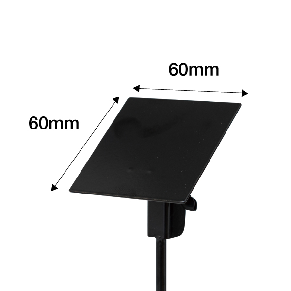 | 商品規格 | [サイズ] ベース部分:φ190mm 総高:H435~645mm(※貼り込み面垂直時) 発泡ボード貼り込み面:60mm角 [素材] 本体:スチール(黒塗装) [重量] 約0.6kg ※角度・高さ、調整可 ※発泡ボード・両面テープは付属しておりません。 |