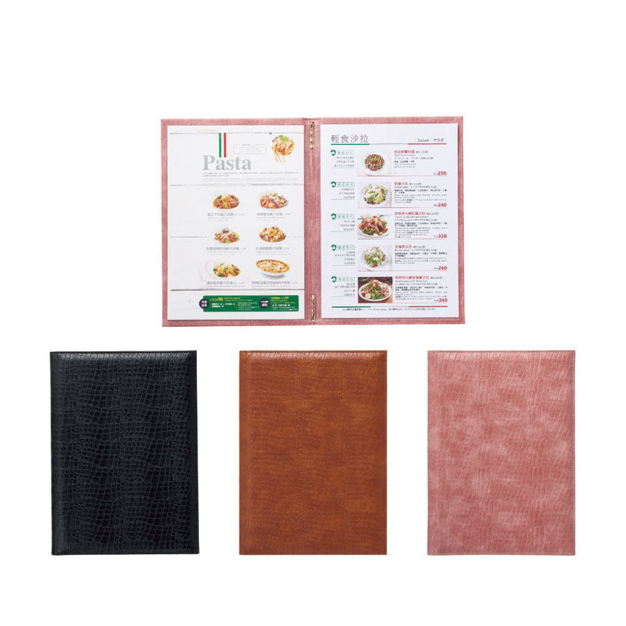 | アイテム情報 | 高級感あふれる風合いのメニューブックです。「名入れあり」ボタンについて名入れ料金は、印刷用データ(ロゴデータ等)をご入稿いただくことを想定しています。文字入力等のデータ制作が必要な場合は、別途費用をお見積もりいたします。 詳しくは、attaお客様サポートへご連絡ください。お問い合わせは→こちら。 |