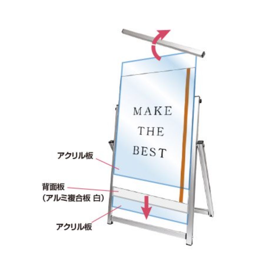 | 商品規格 | [サイズ] 本体(折り畳み時):W612xH825xD24mm 面板サイズ:B2(W515xH728mm) 面板有効サイズ:W505xH718mm [素材] 本体フレーム:アルミ押出し材/アルマイト仕上げ(ブラック) 表面カバー:アクリル透明1.5mm厚 面板:アルミ複合板(白)3mm厚 [重量] 4.6kg ※両面(リバーシブル)タイプ |