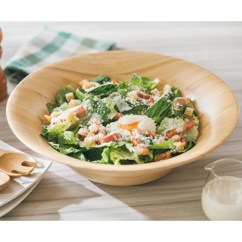 商品規格 | [サイズ] 直径320×高さ95mm(容量3,000ml) [素材] 孟宗竹(原産国:中国またはベトナム) ※表面塗装:ガラスコーティング仕上げ(物質名:ケイ素〈別名:シリカ〉) ※電子レンジ使用不可 表面標準膜厚:20μ 表面硬度:2h 食品衛生法適合:〇 表面瞬間耐熱温度:350℃ 耐熱温度:120℃ 耐冷温度:-20℃ 耐水性:〇 耐薬品性:〇 耐強酸性:〇 耐強アルカリ性:〇 製品変形の可能性:0.001% ※ご利用に際しての注意点※ 1.電子レンジのご使用は出来ません。木材が膨張してガラスコーティング被膜が剥がれてしまいます。 2.硬い物質にぶつけたり、硬い物と重ねたりしないでください。 製品が凹み塗装膜が破れてしまう恐れがございます。 3.長時間水に浸しても問題はございませんが、出来れば8時間以内を目安に乾燥をお願いします。 4.業務用洗剤もご利用頂けます。漂白剤による付け置きは極力御控えください。 5.ご使用期間、洗浄頻度によりますが、表面の水滴が超撥水加工から親水性へと移行致します。 親水性になると食器洗浄後の水切れが速くなる効果がございますので良い変化としてご理解ください。 6.製品の表面加工は、カレー粉などのターメリックやワインの色染みも発生しない仕上げのため、 ご利用に際しては安心してご利用頂けますが、万が一、ご利用中に製品の変色、変形がございましたら お取替え致します。 7.熱いもの(スープや揚げ物)も直接乗せても問題ございません。(表面瞬間耐熱温度は350℃です。) 但し、高温で揚げ物を揚げた油を直接入れたり、直火に直接あててしまうと劣化が早くなりますので ご注意ください。 8.ガラスコーティング塗料は石油由来の材料ではなく、天然素材であるケイ素を主原料としており、 万が一体内に入ってしまった場合でも身体に影響を与える事はございません。 9.ご使用時にお客様によって故意に破損された場合、保証対象外となります。 10.表面塗装が経年劣化によってれた場合、修理は可能でございます。 再塗装を行いご提供させていただきます。 (別途費用が必要になります。) 11.製品は天然素材のため、同じものでも表面のデザインが全て異なりますが、 この不揃いが天然素材の良さであり、加工はハンドメイドのため、サイズも若干差異はございます。 ご理解をお願い申し上げます。 |
