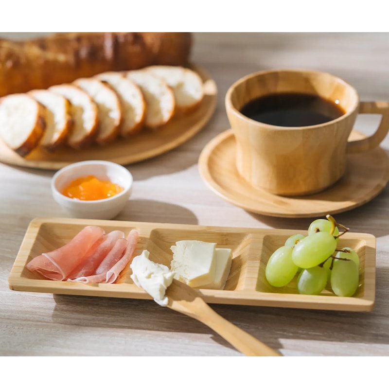 アイテム情報 | ーETHICLE(エシクル)ー あなたと地球のことを考えた器 料理を提供する人にも、食べる人にも、そして地球にも。 エシクルは、皆に優しい食器です。材料は天然素材だけを使用。 生育が進んでCO2の吸収率が悪くなった竹など、資源を有効活用して作られました。 竹製だからこその強度、軽さと様々なシーンにマッチする温かみのある手触り。 長期間使って傷がついても、再度コーティングし直すことで、強度が蘇ります。 循環型社会の実現を目指し、エシクルで食器から環境問題に取り組みませんか? 【独自のガラスコーティング技術で、従業員様の作業負荷を軽減】 天然素材を用いた木製食器などの課題であった傷つきやすさを解決しました。 これにより業務用食器洗浄機の使用も可能に。また、親水性が高く、水滴が滑るように流れ落ちるので、 洗浄後の乾燥も早く、従業員様の作業コストが大幅に軽減します。 【軽くて丈夫だから、取扱いがらくらく】 陶器やガラス食器と比べて非常に軽いため、提供の際の従業員様の負担を軽減します。 万が一、落としても割れることが無いため、安心安全かつ廃棄コストの心配が大幅に低減します。 【熱伝導率が低いから、お料理の美味しさが長持ち】 竹製食器はガラスや陶器の器と比べ、熱伝導率が大幅に低いため、 熱い料理や飲料の提供時も持ちやすく、安全快適に行えます。 また、お料理が冷めにくいので、出来立ての美味しさが長時間持続します。 【天然の竹の温もりで、お客様のお食事に安らぎを】 天然素材を使用しているため、手触りや口当たりから自然の温もりを感じることができます。 陶器やガラス製の器とは一味違ったカジュアルな使用感が、お食事をする人に優しく寄り添います。 【嫌な臭いがしないから、お料理の美味しさそのまま】 食器の塗装に使用する塗料は非石油素材。 嫌な臭いがしないため、お料理本来の味を美味しくお召し上がり頂けます。 【生育した竹素材だけを使用】 エシクルの材料は基本、竹素材を使用いたします。 竹林は成長速度が速く6ヶ月で大人となりますが、老いるのも早く、CO2吸収率が悪くなります。 そのため、成長した竹は早く伐採をし、次の芽が育つように環境を整備する事が必要になります。 エシクルは生育した材料を無駄なく使用し、CO2吸収に貢献できる環境を提供しております。 【ガラスコーティング塗料も、土に還る原材料を使用】 表面塗装はガラスコーティングという無機質(非石油)になります。 地球の物質として酸素の次に多い天然素材を用いることで土に還るという自然の法則に従っております。 【再塗装して長く使えるから、環境にやさしい】 ガラスコーティングを施すことで製品の耐久性が10倍以上になり、リデュースを実現いたします。 経年劣化した場合、再塗装を行う事で循環型の提供システムを構築しております。 ※ご利用に際しての注意点※ 1.電子レンジのご使用は出来ません。木材が膨張してガラスコーティング被膜が剥がれてしまいます。 2.硬い物質にぶつけたり、硬い物と重ねたりしないでください。 製品が凹み塗装膜が破れてしまう恐れがございます。 3.長時間水に浸しても問題はございませんが、出来れば8時間以内を目安に乾燥をお願いします。 4.業務用洗剤もご利用頂けます。漂白剤による付け置きは極力御控えください。 5.ご使用期間、洗浄頻度によりますが、表面の水滴が超撥水加工から親水性へと移行致します。 親水性になると食器洗浄後の水切れが速くなる効果がございますので良い変化としてご理解ください。 6.製品の表面加工は、カレー粉などのターメリックやワインの色染みも発生しない仕上げのため、 ご利用に際しては安心してご利用頂けますが、万が一、ご利用中に製品の変色、変形がございましたら お取替え致します。 7.熱いもの(スープや揚げ物)も直接乗せても問題ございません。(表面瞬間耐熱温度は350℃です。) 但し、高温で揚げ物を揚げた油を直接入れたり、直火に直接あててしまうと劣化が早くなりますので ご注意ください。 8.ガラスコーティング塗料は石油由来の材料ではなく、天然素材であるケイ素を主原料としており、 万が一体内に入ってしまった場合でも身体に影響を与える事はございません。 9.ご使用時にお客様によって故意に破損された場合、保証対象外となります。 10.表面塗装が経年劣化によってれた場合、修理は可能でございます。 再塗装を行いご提供させていただきます。 (別途費用が必要になります。) 11.製品は天然素材のため、同じものでも表面のデザインが全て異なりますが、 この不揃いが天然素材の良さであり、加工はハンドメイドのため、サイズも若干差異はございます。 ご理解をお願い申し上げます。 |