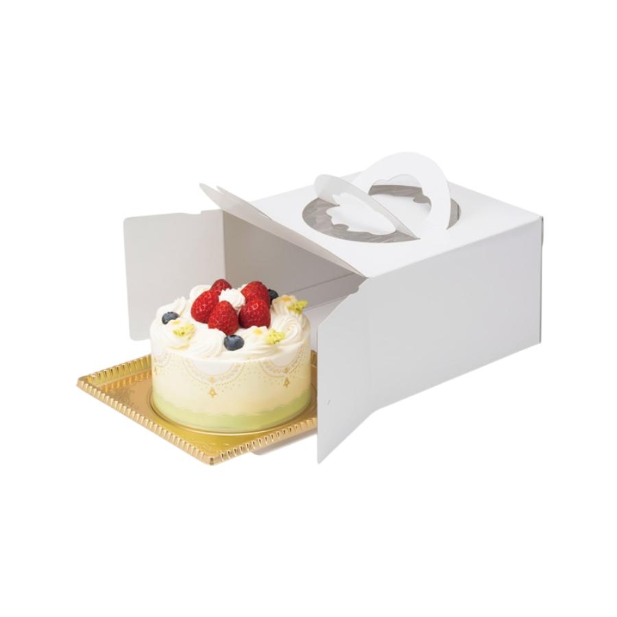 アイテム情報 | スタンダードな手提げケーキ箱です。 ホールケーキやデコレーションケーキにオススメです。 高級感あふれる金トレー付き。 |