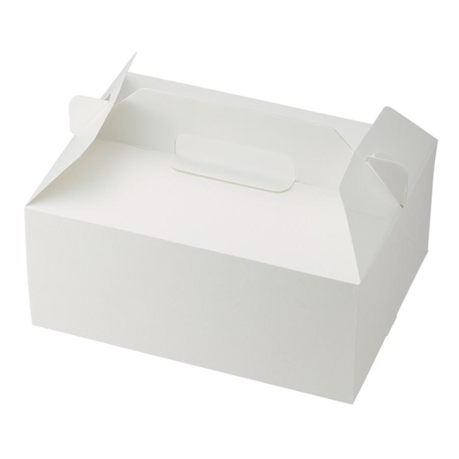 | アイテム情報 | ケーキの出し入れが簡単なサイドオープンタイプのキャリーケース箱です。保冷剤が挟めるスリット付き。軽量化された段ボール素材を使用しております。森林認証紙です。カットケーキ8~9個が目安です。 |