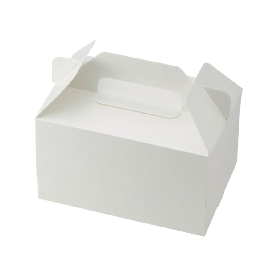| アイテム情報 | ケーキの出し入れが簡単なサイドオープンタイプのキャリーケース箱です。保冷剤が挟めるスリット付き。軽量化された段ボール素材を使用しております。森林認証紙です。カットケーキ4~5個が目安です。 |
