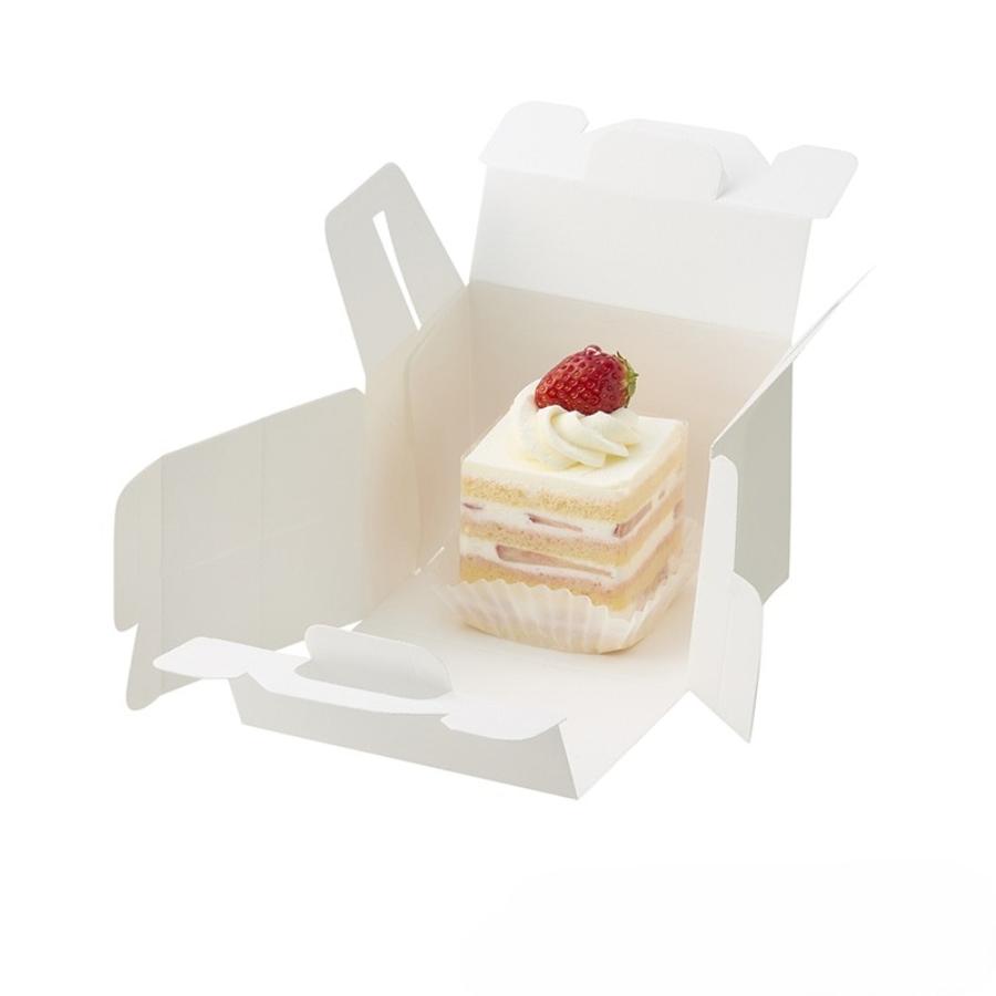 | アイテム情報 | ケーキの出し入れが簡単なサイドオープンタイプのキャリーケース箱です。保冷剤が挟めるスリット付き。軽量化された段ボール素材を使用しております。森林認証紙です。カットケーキ1個が目安です。 |