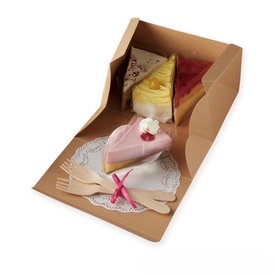 | アイテム情報 | ナチュラルなクラフトテイストのケーキ箱です。カットケーキ4個が目安です。 |