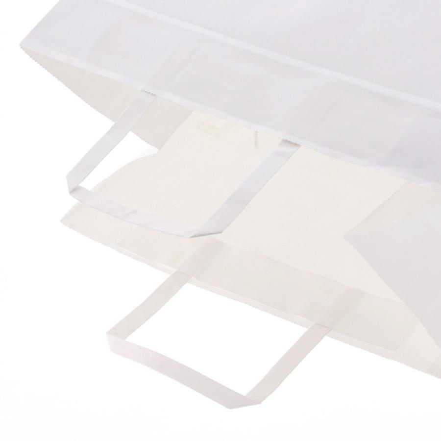 アイテム情報 ハンドルは一般的な平紐の幅10mm幅よりも太めの12mm幅を採用しているので、手にやさしく持ちやすい紙袋です。オーソドックスな白無地なので、催事など色々な用途でご使用頂けます。