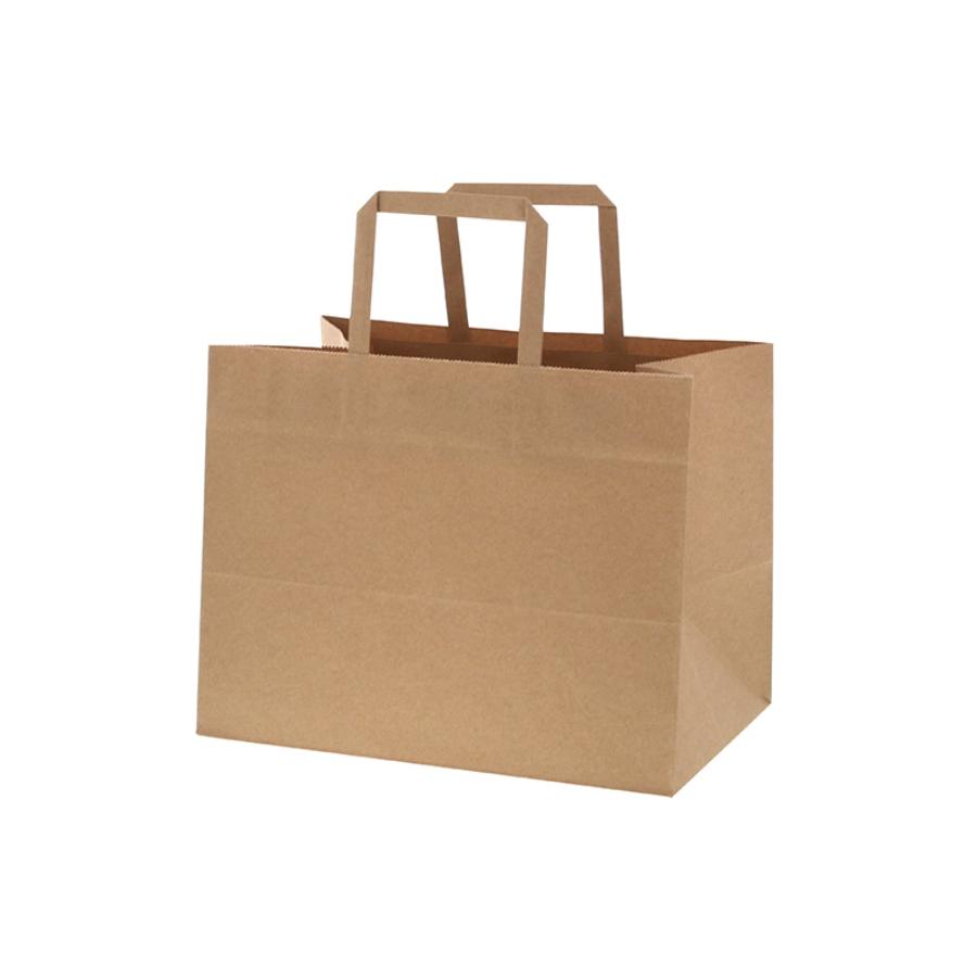 | アイテム情報 | ハンドルは一般的な平紐の幅10mm幅よりも太めの12mm幅を採用しているので、手にやさしく持ちやすい紙袋です。オーソドックスなクラフト無地なので、催事など色々な用途でご使用頂けます。 |