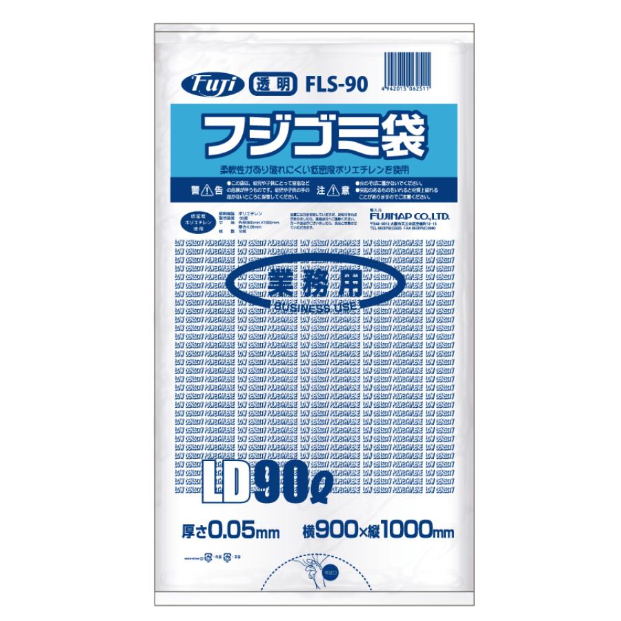 フジゴミ袋 低密度PE 90L 透明 200枚 ※北海道・沖縄・離島 送料別途 ※個人宅配送不可 (尚美堂/フジナップ)