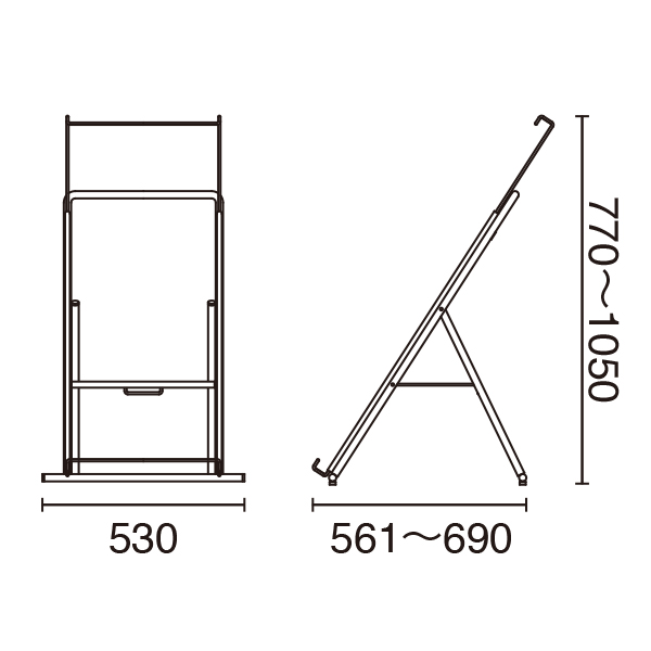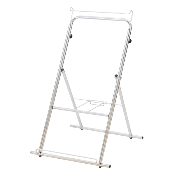 | 商品規格 | [サイズ] 外寸(最大) W530×D690×H1050mm 外寸(最小) W530×D561×H770mm A1セット時:約H770mm、B1セット時:約H920mm 受け幅 30mm 受け幅ワイド 405mm 重量 3.5kg 梱包サイズ 930×540×120mm [色] シルバー [素材] スチールクロームメッキ仕上 ※対応パネルサイズ:A1縦横・B1縦 ※B1横置きはできません ※角度は固定です |