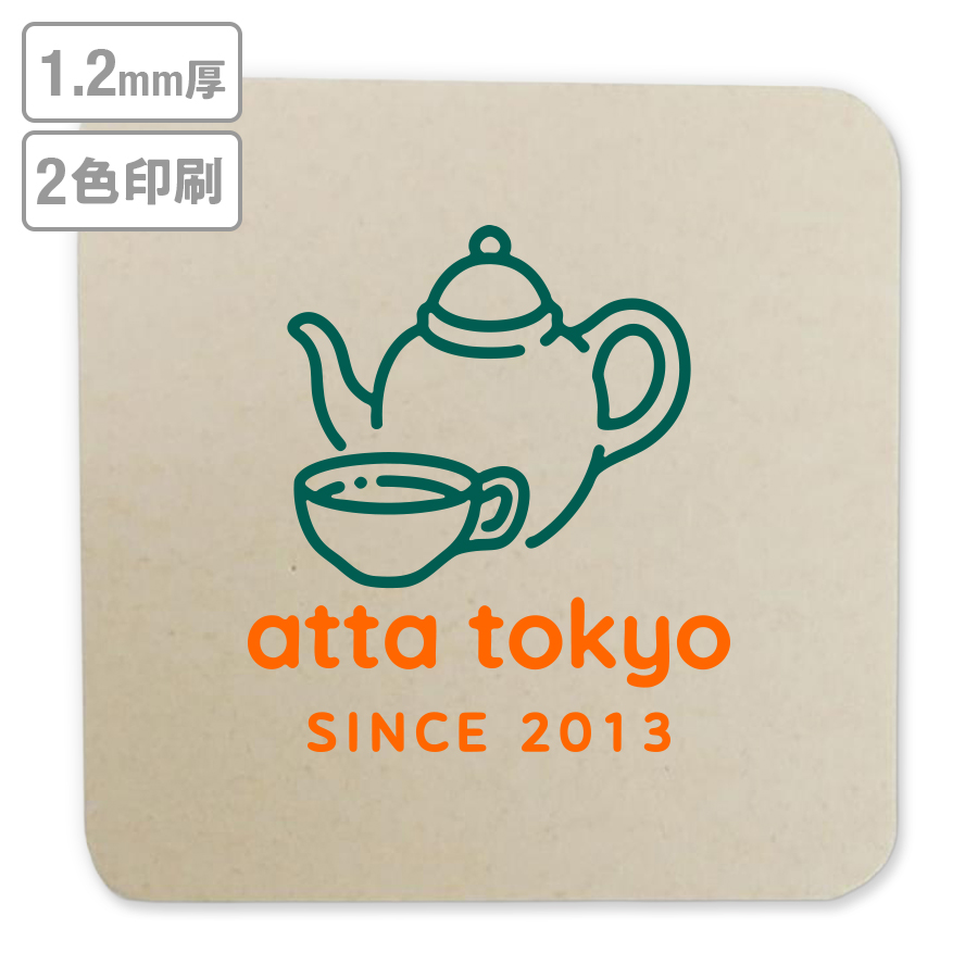 高級名入れコースター(未晒) 1.2mm厚 90mm角型 2色印刷 【データ入稿】 ※沖縄・離島 送料別途