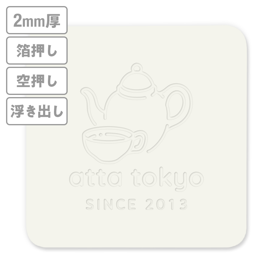 高級加工コースター(生成り) 箔押し・空押し・浮き出し 2mm厚 90mm角型 【データ入稿】 ※沖縄・離島 送料別途