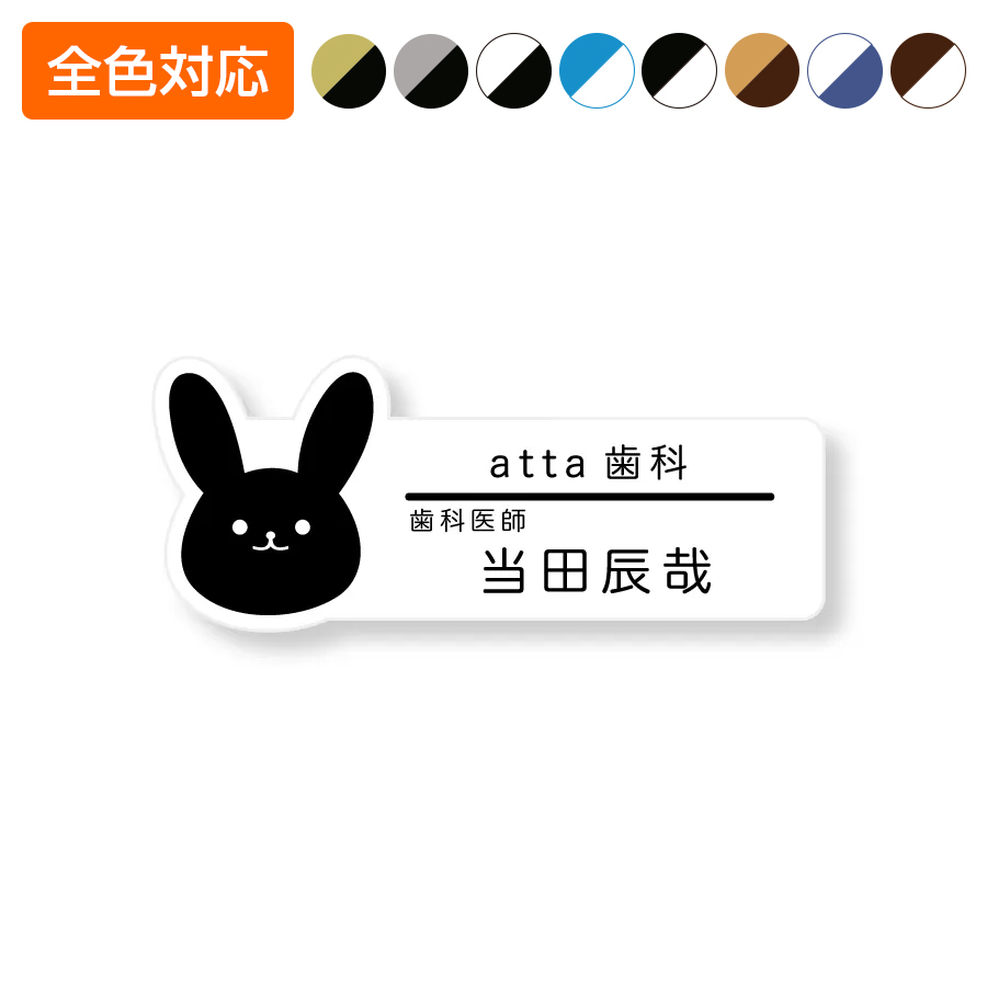 ネームプレート うさぎ型 29×75mm 二層板 オリジナル名入れ ピン・クリップ両用タイプ 制作費込み