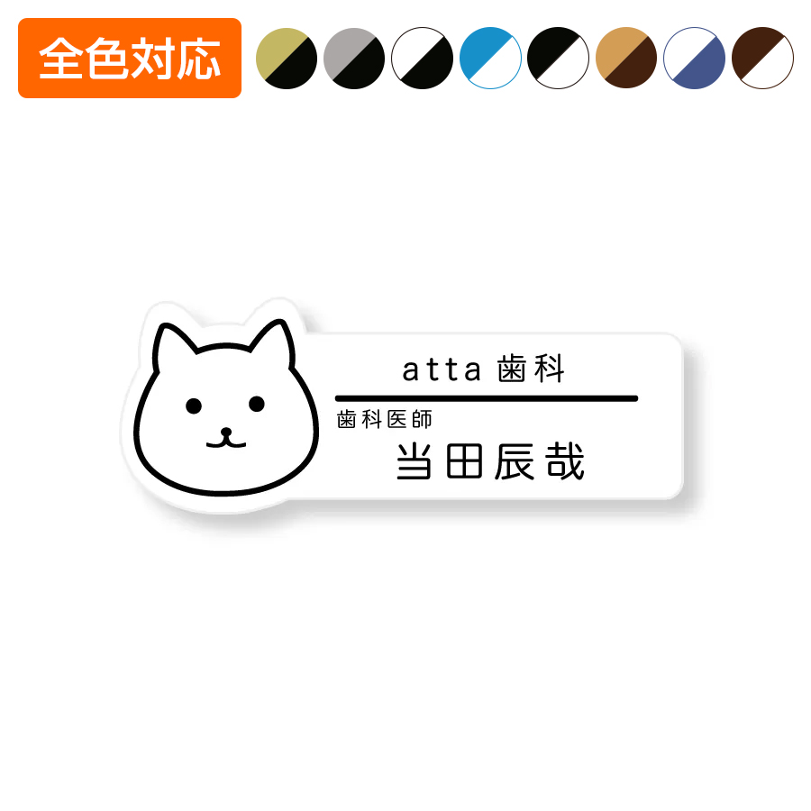 ネームプレート ネコ型 28×75mm 二層板 オリジナル名入れ ピン・クリップ両用タイプ 制作代込み