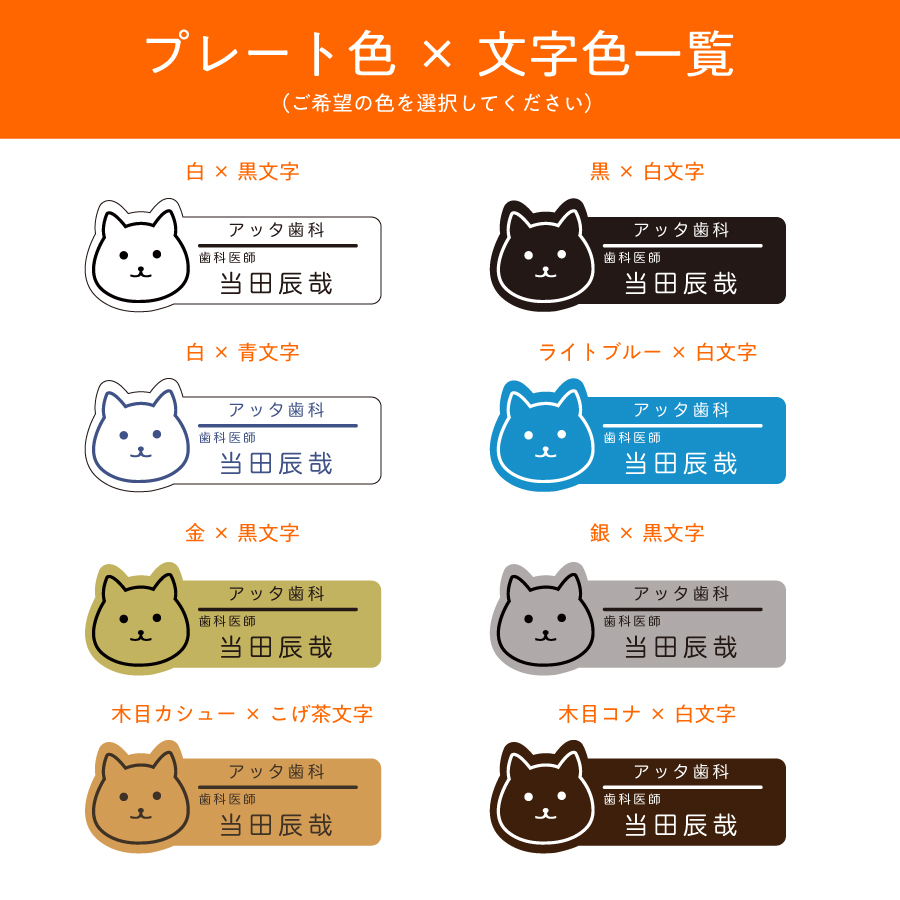 金+黒文字 / 銀+黒文字 / 白+黒文字 / 白+青文字 / 黒+白文字 / ライトブルー+白文字 / 木目カシュー +こげ茶文字 / 木目コナ+白文字