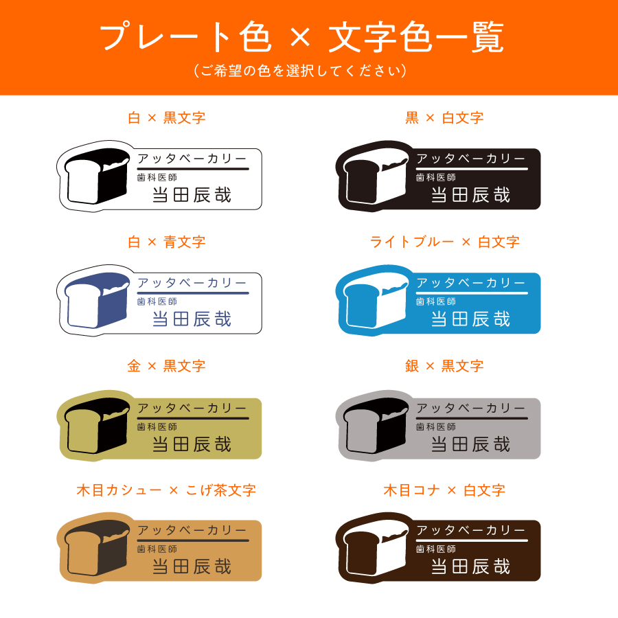 | 商品規格 | [サイズ] 26x75mm [色] 金+黒文字 / 銀+黒文字 / 白+黒文字 / 白+青文字 / 黒+白文字 / ライトブルー+白文字 / 木目カシュー +こげ茶文字 / 木目コナ+白文字 [裏面ピン・クリップ] ピン・クリップ両用タイプ [裏面オプション] マグネットタイプに変更希望の方は、オプションにあります「マグネット仕様に変更する」の欄に希望個数をご入力ください。(※マグネットはお客様側での貼付けとなります。この場合、ピン・クリップは付属しませんのでご注意ください。)詳細についてはこちらの記事を参照ください。 |