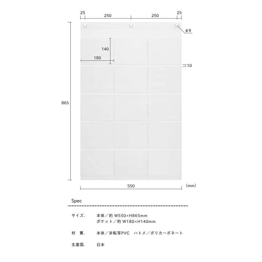 | 商品規格 | [サイズ] 本体:W55×H86.5cm ポケット:W18×H14cm [色] クリアー [素材] 非転写PVC/ポリカーボネート |