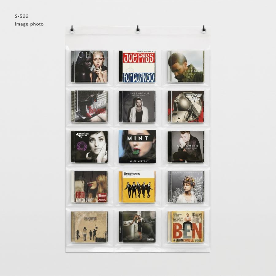 | アイテム情報 | 壁面に飾って楽しむディスプレイポケットシリーズ。 お気に入りのCDジャケットを壁面に15枚収納できるディスプレイポケット。ポケットはタテ・ヨコ共に等間隔で収納できるようになっているので、見た目もすっきりとキレイに飾ることができます。また、ジュエルケース(一般的なCDケース)がすっぽり入るマチ無しタイプ。その他にも、タテ向きの2L判写真やブロマイドなどの整理収納にも最適です。 日本製の非転写加工を施した厚手の透明PVCを使用し、ウェルダー加工は国内工場で一点ずつ職人が丁寧に仕上げています。 国産にこだわった「高品質・安心」をお届けします。 |