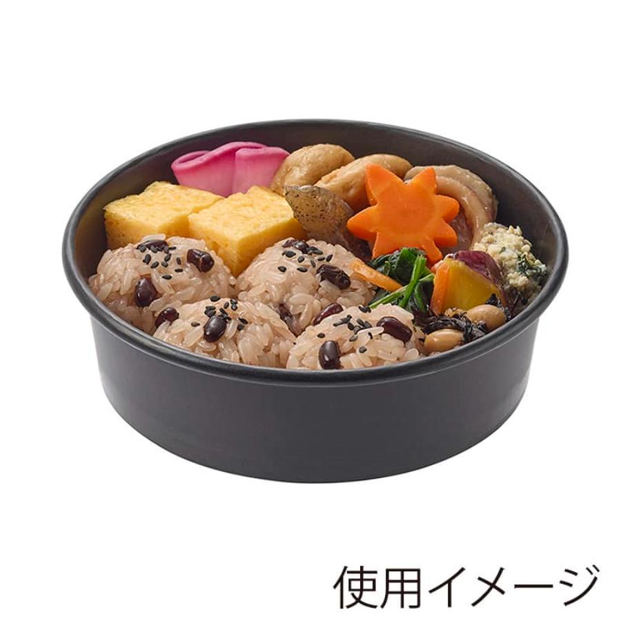 両面黒色印刷のシックなフードカップです。何にでも合わせやすく食材が引き立ちます。丼・サラダ・惣菜などのテイクアウトに。