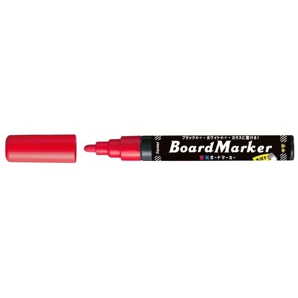 | アイテム情報 | あざやかな発色の蛍光ボードマーカー。店頭の看板やメニューボードに最適です。カラーも豊富にご用意。ブラックボード・ホワイトボードのどちらにも対応します。長期間の展示でも綺麗な色を保ち、退色しにく水性顔料インクを使用。 中字は筆記幅2mm。文字・線・イラストと幅広く使えるサイズです。 |