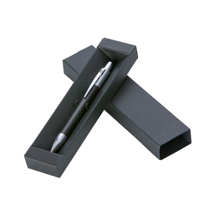 | 商品規格 | [サイズ] 直径約12xH135mm [軸色] 黒/シルバー(※インク色:黒) [素材] カーボン・真鍮 [仕様] 黒箱入り(別途箔押し可) |