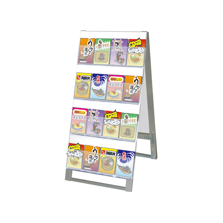 | アイテム情報 | パンフレットは一人のコンシェルジュ。 スタンド1台の内に、4段分のたくさんのパンフレットを展示することができます。冊子のサイズに合わせてケースの仕切板を動かせますので、従来のA6サイズはもちろん、B6・A4三つ折・変形型にも対応可能です。お客様へのアピールに欠かせないパンフレットやチラシを置いて、集客やお店の認知度アップにご活用下さい。 |