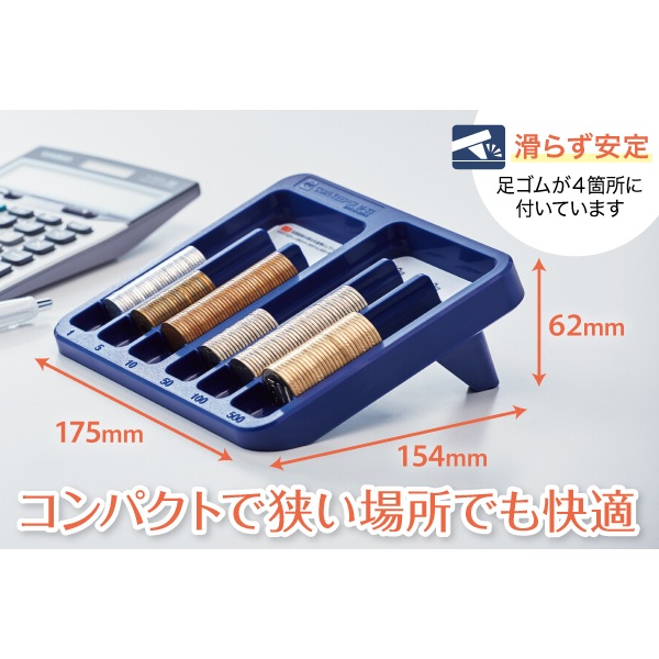 | 商品規格 | [サイズ] W175×D154×H62mm 168g [素材] 再生ABS樹脂 [収納金額]※合計33,300円 ・1円硬貨:50枚:50円 ・5円硬貨:50枚:250円 ・10円硬貨:50枚:500円 ・50円硬貨:50枚:2,500円 ・100円硬貨:50枚:5,000円 ・500円硬貨:50枚:25,000円 |