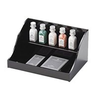 アメニティ用品(シャンプー、ボディソープ、歯ブラシ、タオル)などを整理し、整然と保つために使われるトレイです。