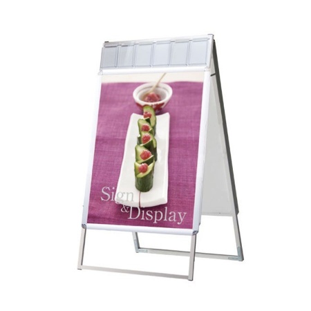 ポスターグリップスタンド看板パンフレットケース付A2 両面・屋内用・シルバーフレーム PGSKP-A2RS