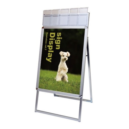 ポスターグリップスタンド看板パンフレットケース付A2 片面・屋内用・シルバーフレーム PGSKP-A2KS